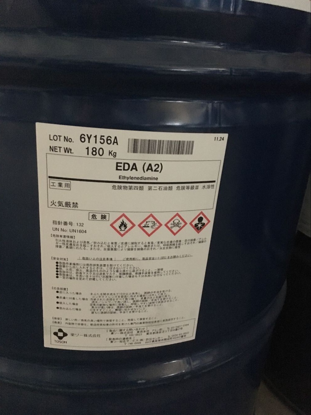 產(chǎn)品名 | 乙二胺 | 英文名 | Ethylenediamine(EDA) | 產(chǎn)品外觀 | 無色透明液體 | 包裝規(guī)格 | 180kg/桶(鐵桶) | 產(chǎn)地 | 日本 | 供應(yīng)商 | 東曹 | 應(yīng)用 | 農(nóng)藥、固化劑、聚酰胺樹脂等 | 危險(xiǎn)類別 | 3類;罚ㄒ字票 | CAS NO | 107-15-3 |
